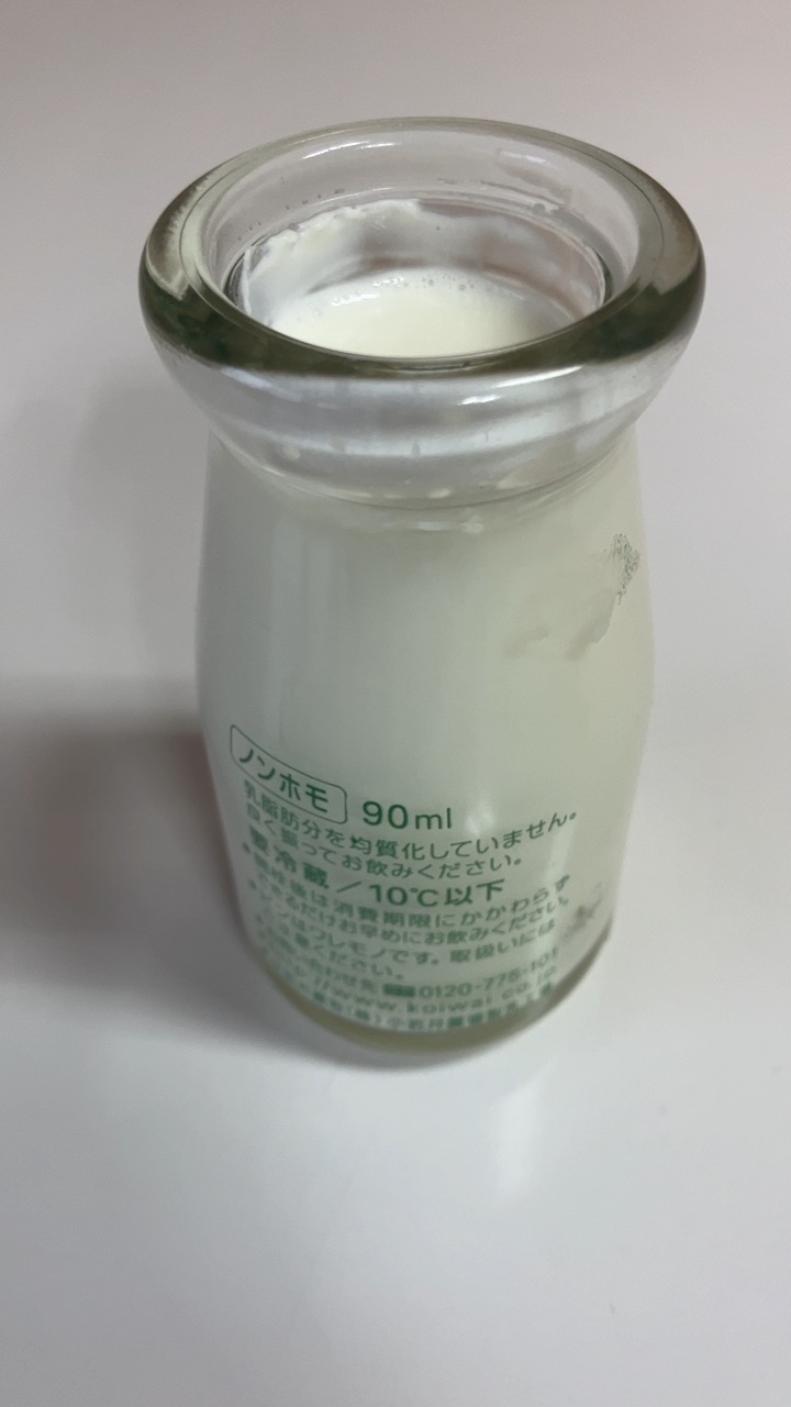 こちらでは小岩井農場育ちの牛乳を飲んでみました。90mlで値段は150円です。乳脂肪分が均質化されていないので、ところどころにドロっとした食感があって、とても濃さを感じる牛乳でした。