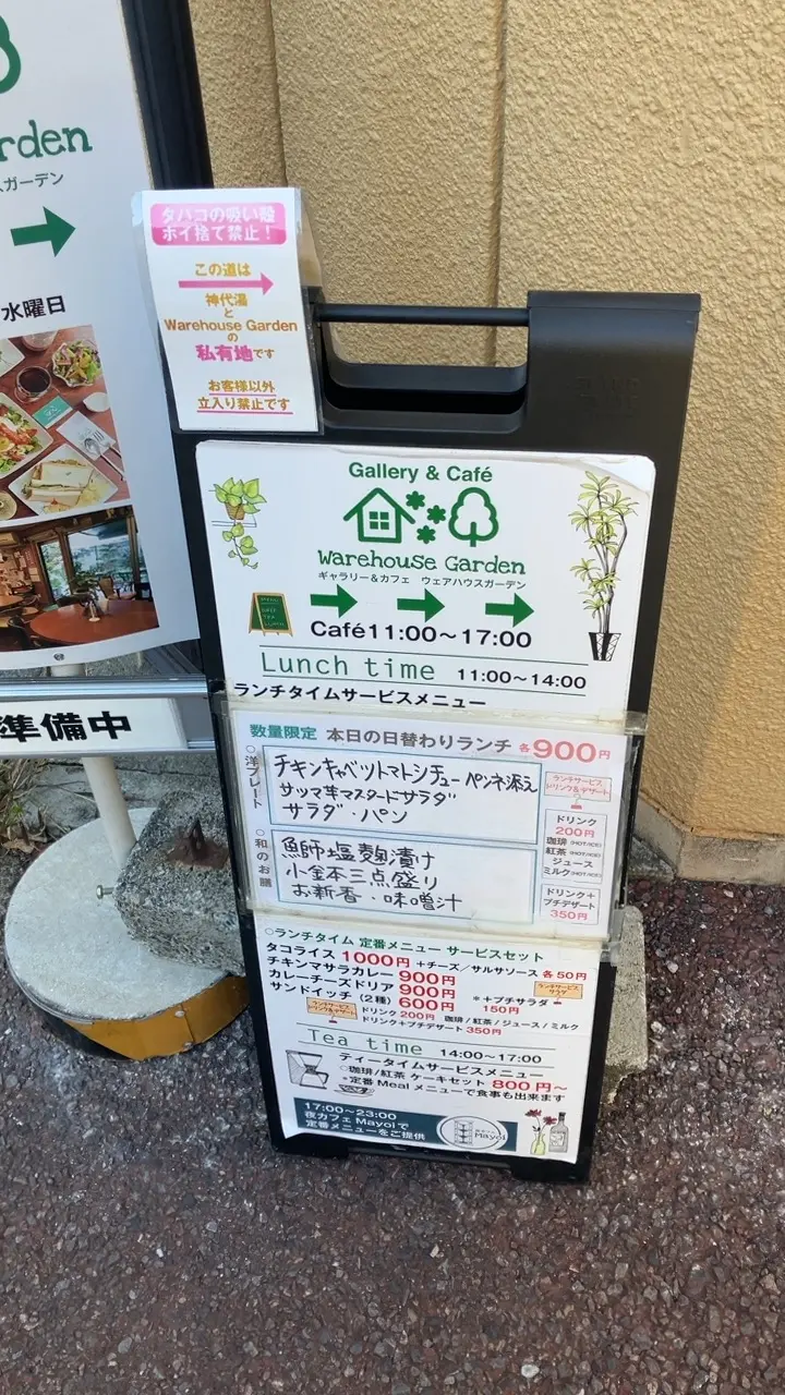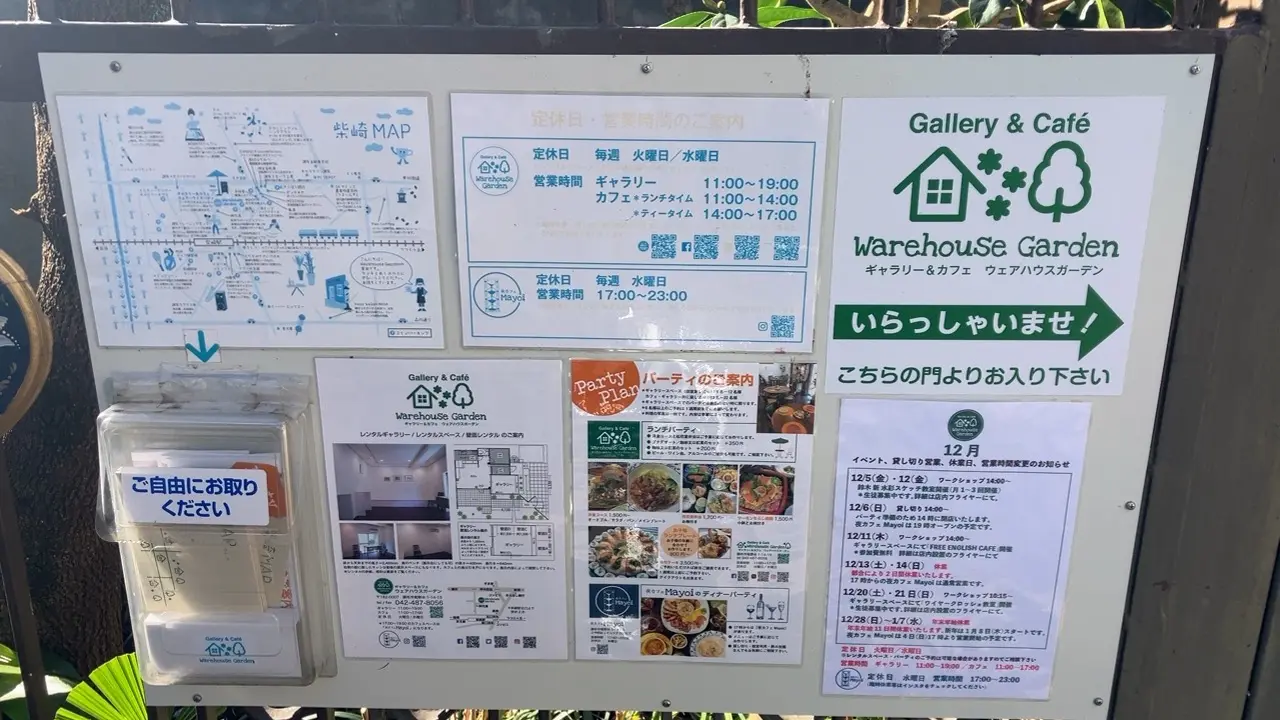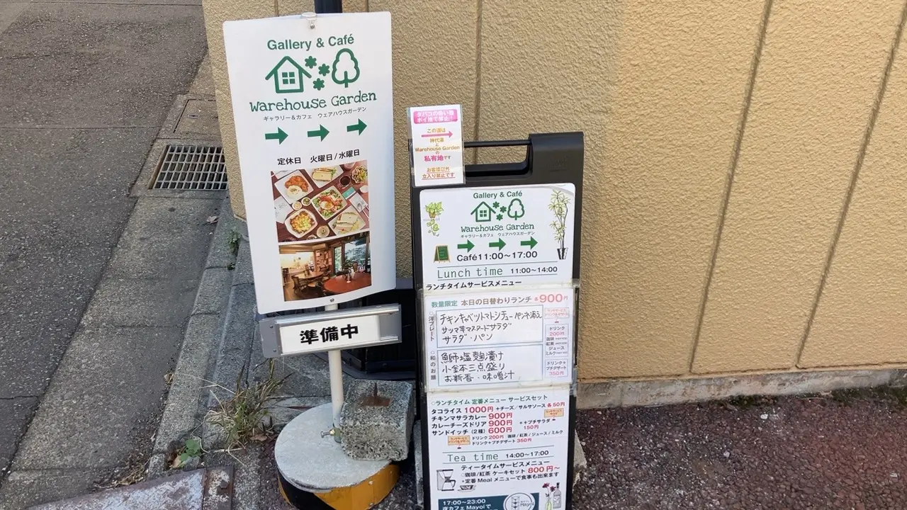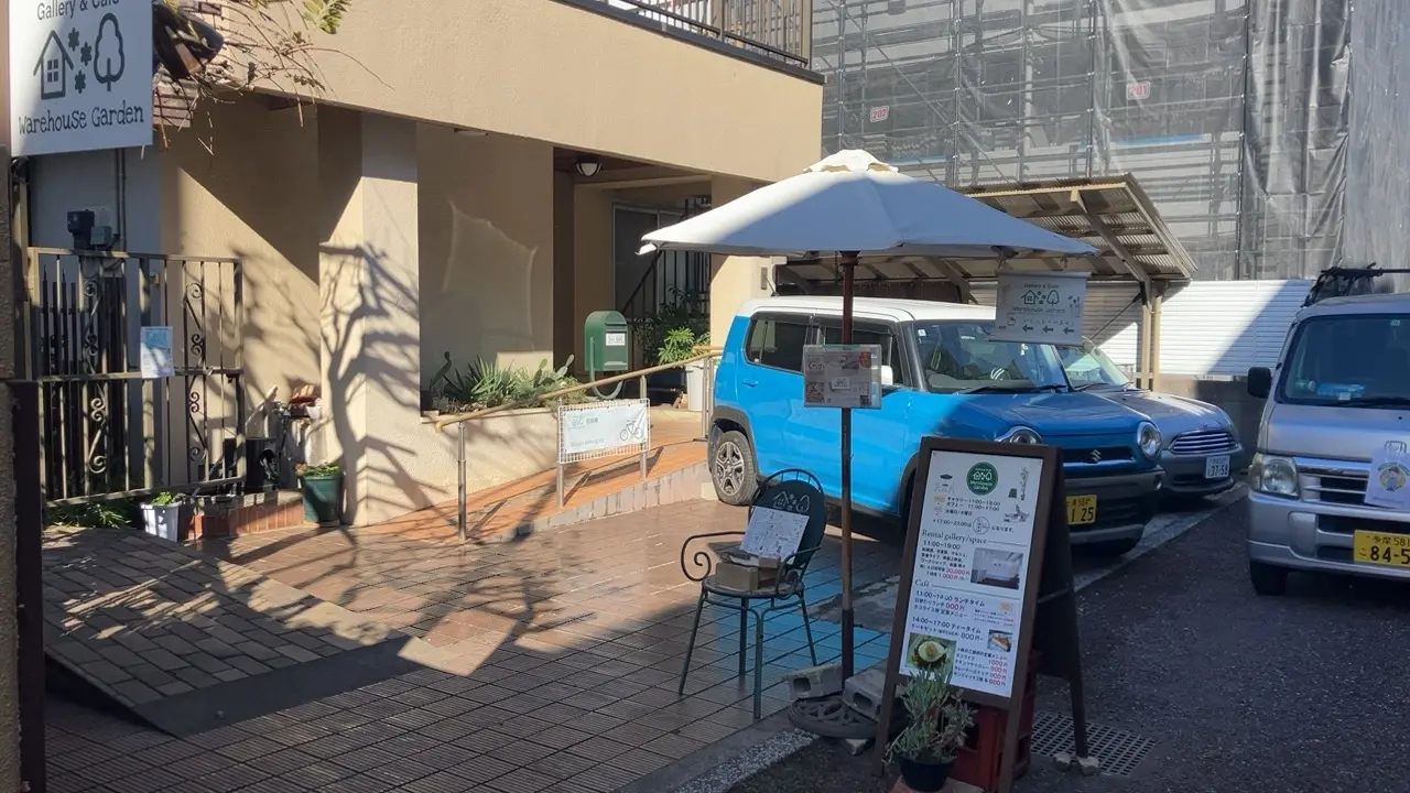京王線の柴崎駅近くのGallery & Cafe Warehouse Gardenというお店に日曜日の午前11時45分頃に行ってみました。神代湯という銭湯の横にある路地を奥に入っていったところにあります。なかなか、初めての人には見つけにくい場所なので近所の方の利用が多いと想像できます。