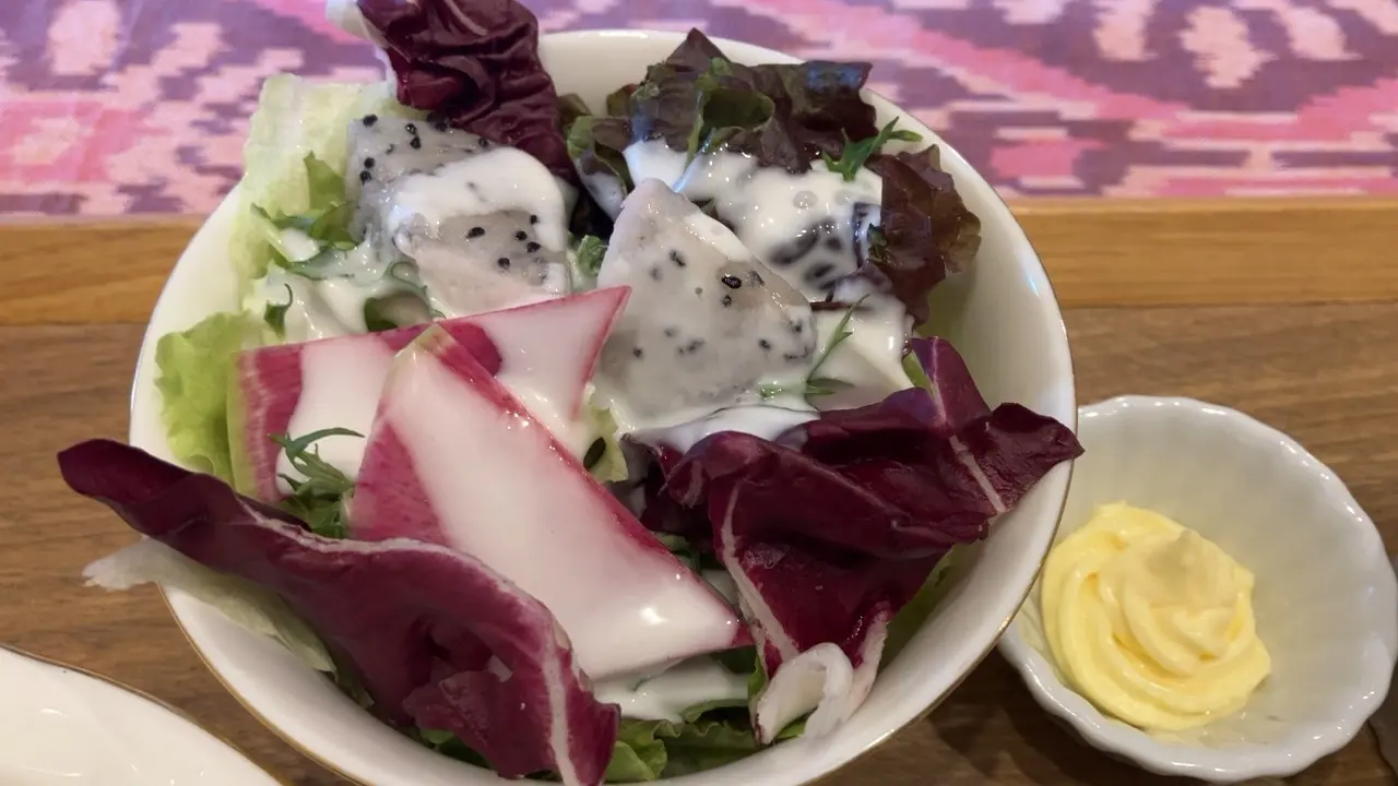 サラダです。シーザードレッシングがタップリとかかっていて美味しいです。